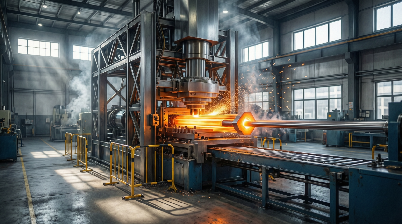 Подготовка заготовки — нагрев алюминиевого слитка до 400–500 °C.