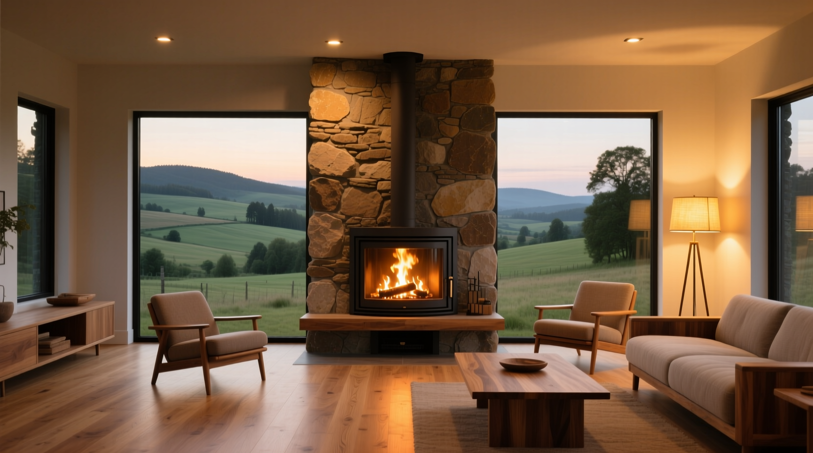Современные дровяные печи давно перестали быть просто утилитарными устройствами. Их дизайн тщательно продуман: от минималистичных чёрных моделей до ретро-решений с медной фурнитурой и декоративной кладкой. Некоторые печи оснащаются панорамными стеклянными дверцами, через которые можно наблюдать за игрой пламени — это особенно ценно в гостиной или холле загородного дома.