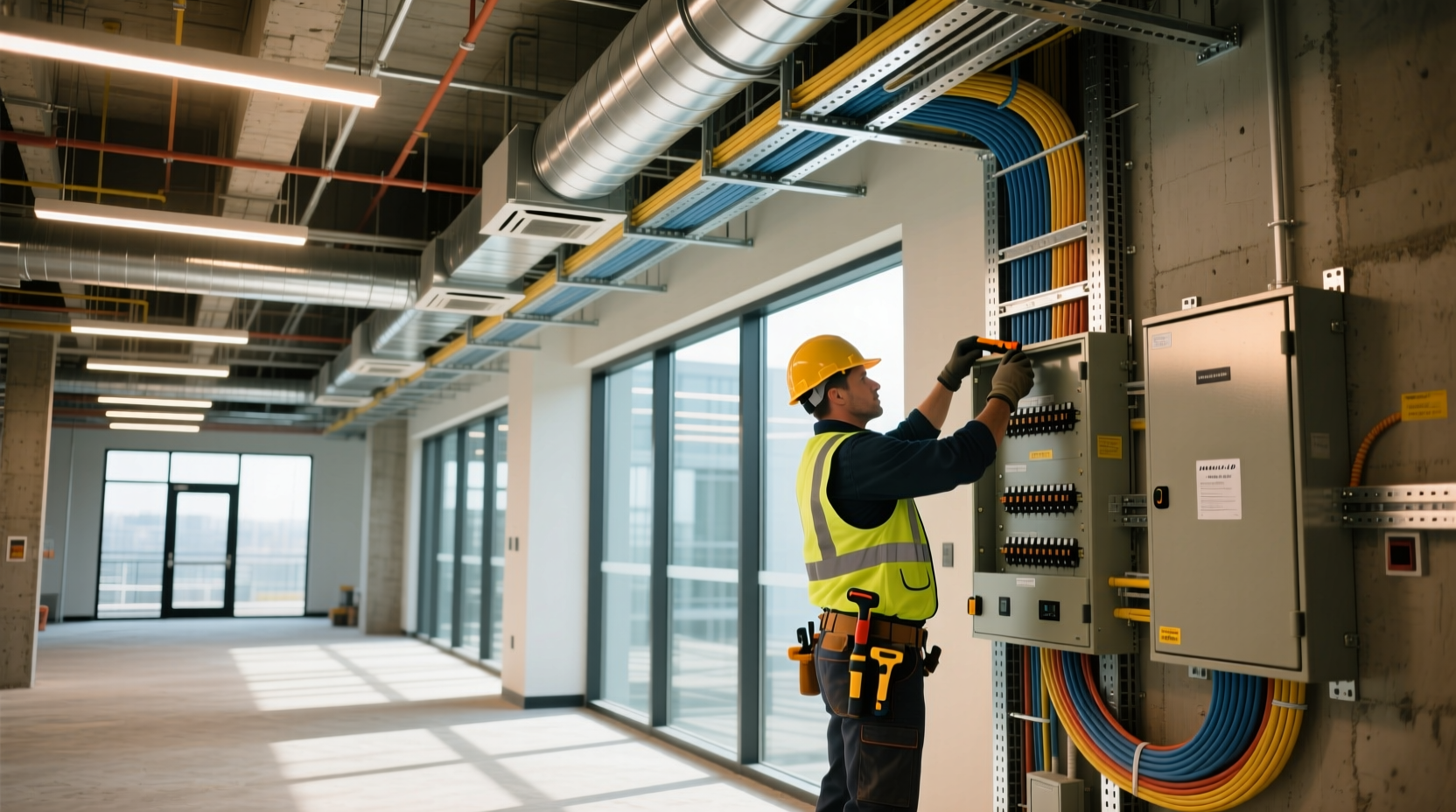 Под единым названием «электромонтаж» скрывается комплекс операций, который затрагивает практически все инженерные системы здания. Это не только силовые линии, но и освещение, слаботочные сети, системы безопасности и автоматика. На крупных объектах процессы идут параллельно, поэтому важно увязать действия электриков со строителями, вентиляционщиками, IT-специалистами.