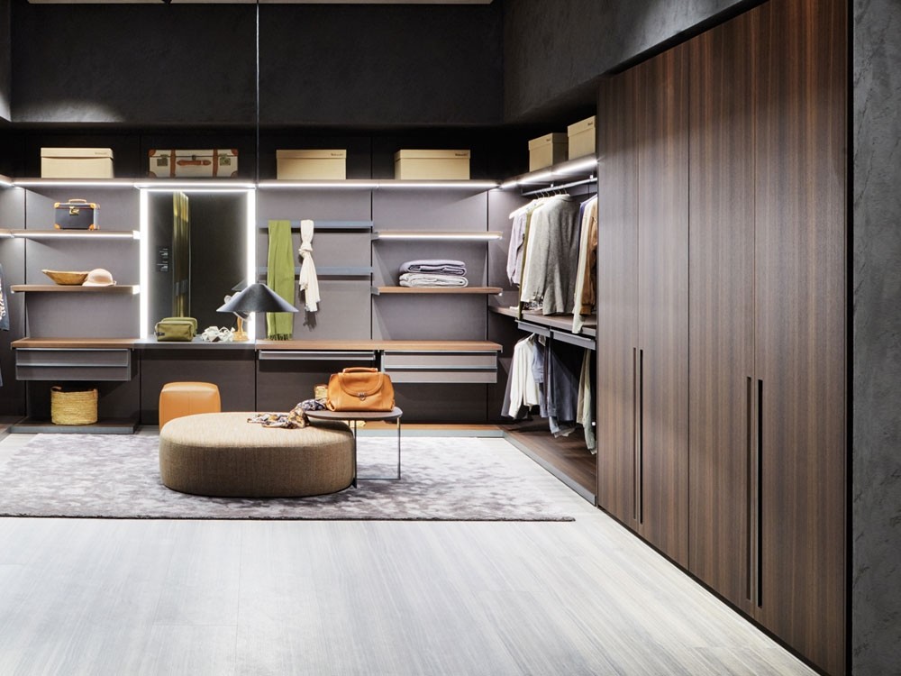 Четкие геометрические формы, минималистичная фурнитура, контрастные комбинации. Дерево часто сочетают со стеклом и металлом.