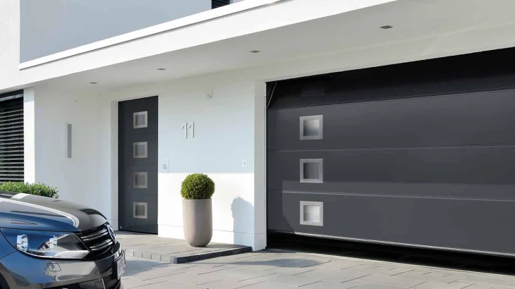 - Открываются вертикально вверх, экономя место перед гаражом.