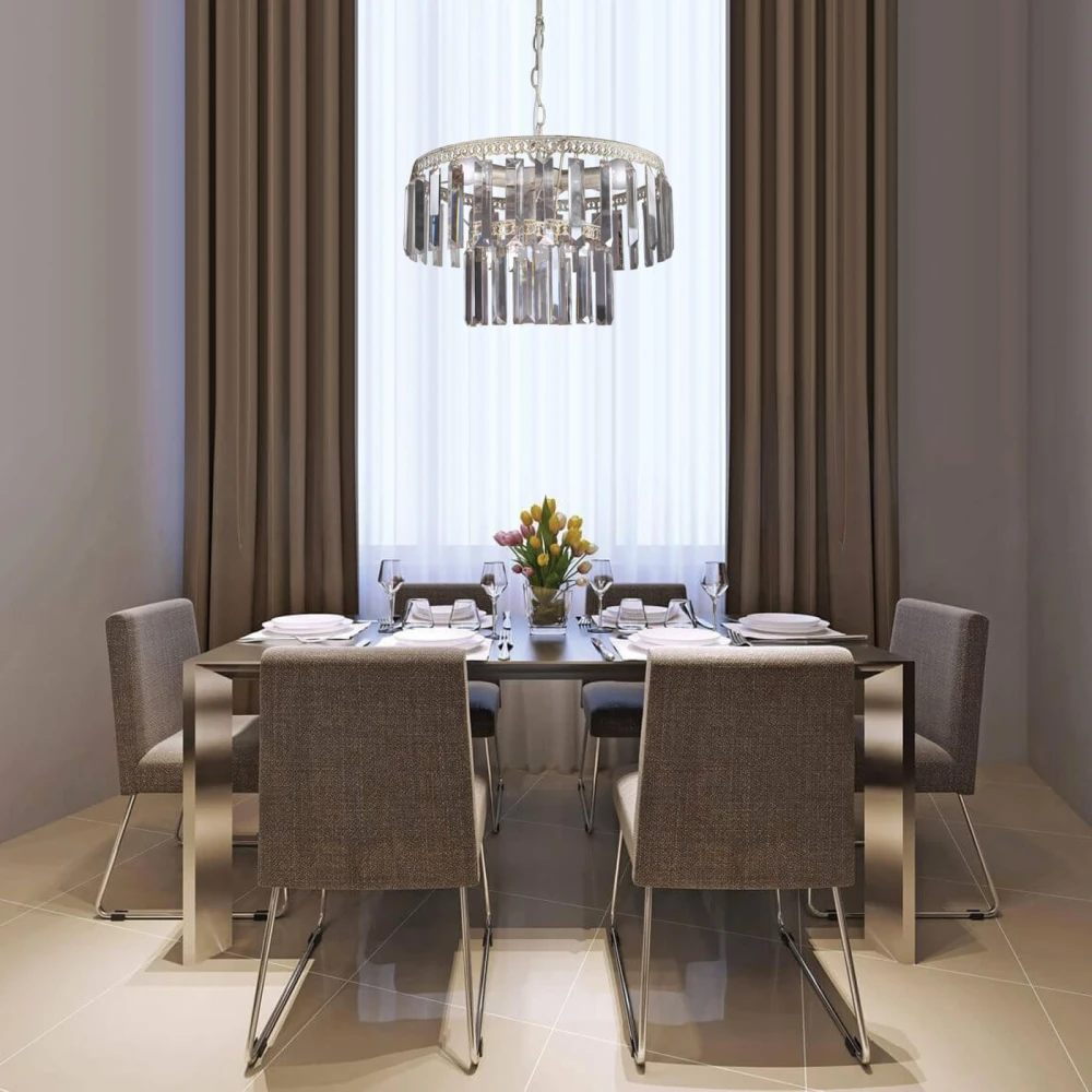 Стекло является более практичной и доступной альтернативой хрусталю. Современное закаленное стекло отличается высокой прочностью, устойчивостью к температурным перепадам и механическим повреждениям. Стеклянные плафоны легко моются, не теряют привлекательности со временем и представлены в широкой цветовой гамме. Матовое стекло создает мягкий рассеянный свет, прозрачное — более яркий и направленный, а цветное стекло позволяет создавать интересные световые эффекты.