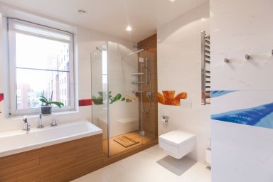 Стиль ванной комнаты может быть направлен на подзарядку энергией, либо расслабление. Душевые кабины лучше всего вписываются в современные течения дизайна, чем в классические. В небольших пространствах предпочтительней смотрится модерн, хай-тек или минимализм. Большие ванные комнаты позволяют сделать отделку в стиле лофт или барокко.