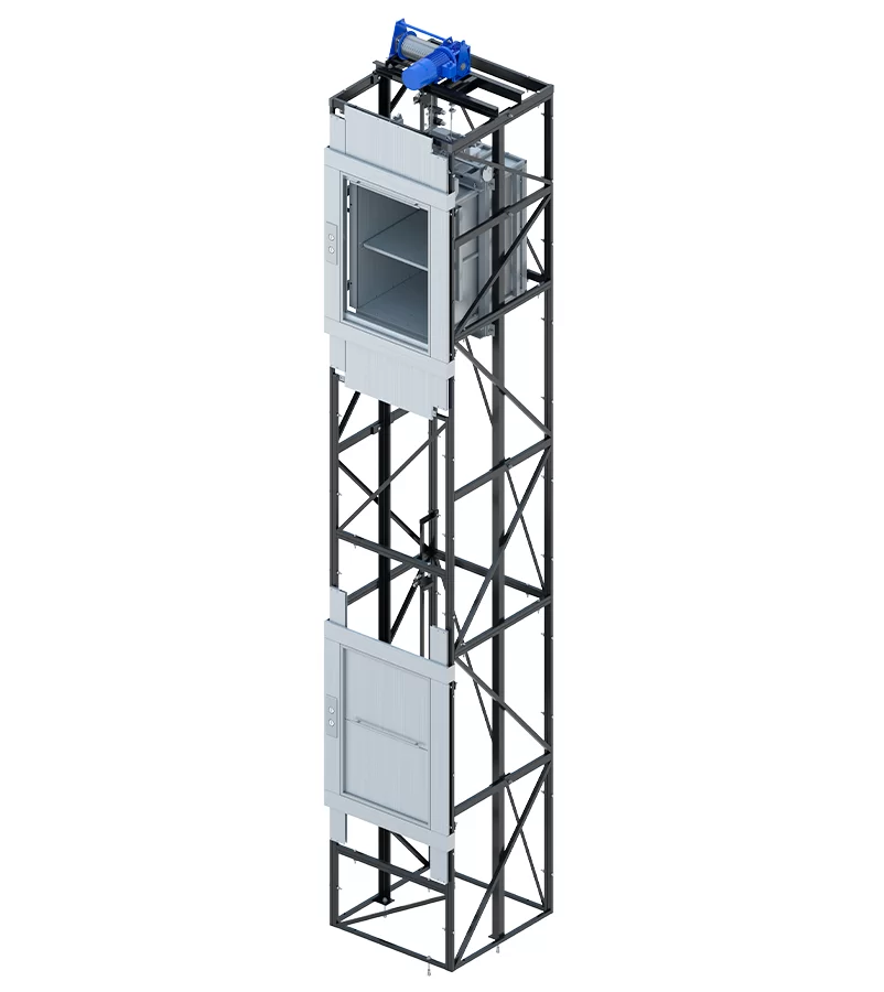 Наличие подъемника обеспечивает быстрый подъем материалов, запчастей, товаров, продуктов, инвентаря с соблюдением требований безопасности.