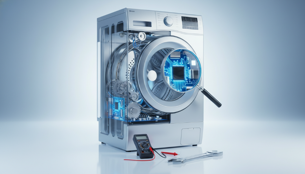 Модуль управления (электронные мозги машины) — любимая «кормушка» аферистов. Его поломку проверить клиенту сложно. Часто блок просто увозят, протирают от пыли и привозят обратно, выставляя счет как за сложный ремонт. Всегда настаивайте на диагностике периферии (ТЭН, насос, двигатель, устройство блокировки люка) ПЕРЕД тем, как трогать электронику. В 90% случаев проблема именно в механике.