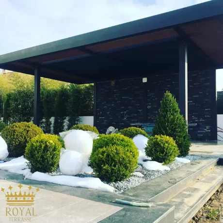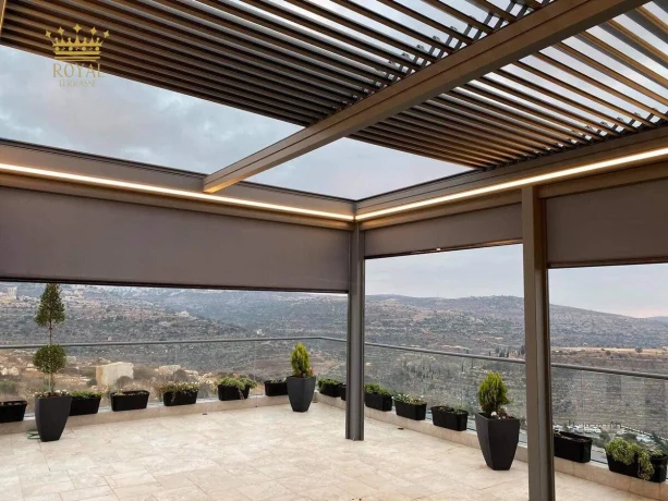 Современные королевские террасы — это сложные инженерные сооружения, где каждая деталь продумана до мелочей. Системы автоматического остекления с закалёнными стеклами и умным управлением позволяют одним нажатием кнопки превращать открытую площадку в уютную зимнюю веранду. Биоклиматические перголы с регулируемыми ламелями создают идеальный микроклимат в любое время года, а встроенные системы подогрева и охлаждения делают пребывание на террасе комфортным независимо от капризов погоды. Особой популярностью пользуются многоуровневые конструкции с зонированием пространства — здесь могут гармонично сочетаться обеденная зона с роскошным деревянным столом, зона отдыха с каминным комплексом и солярий с гидромассажной ванной.