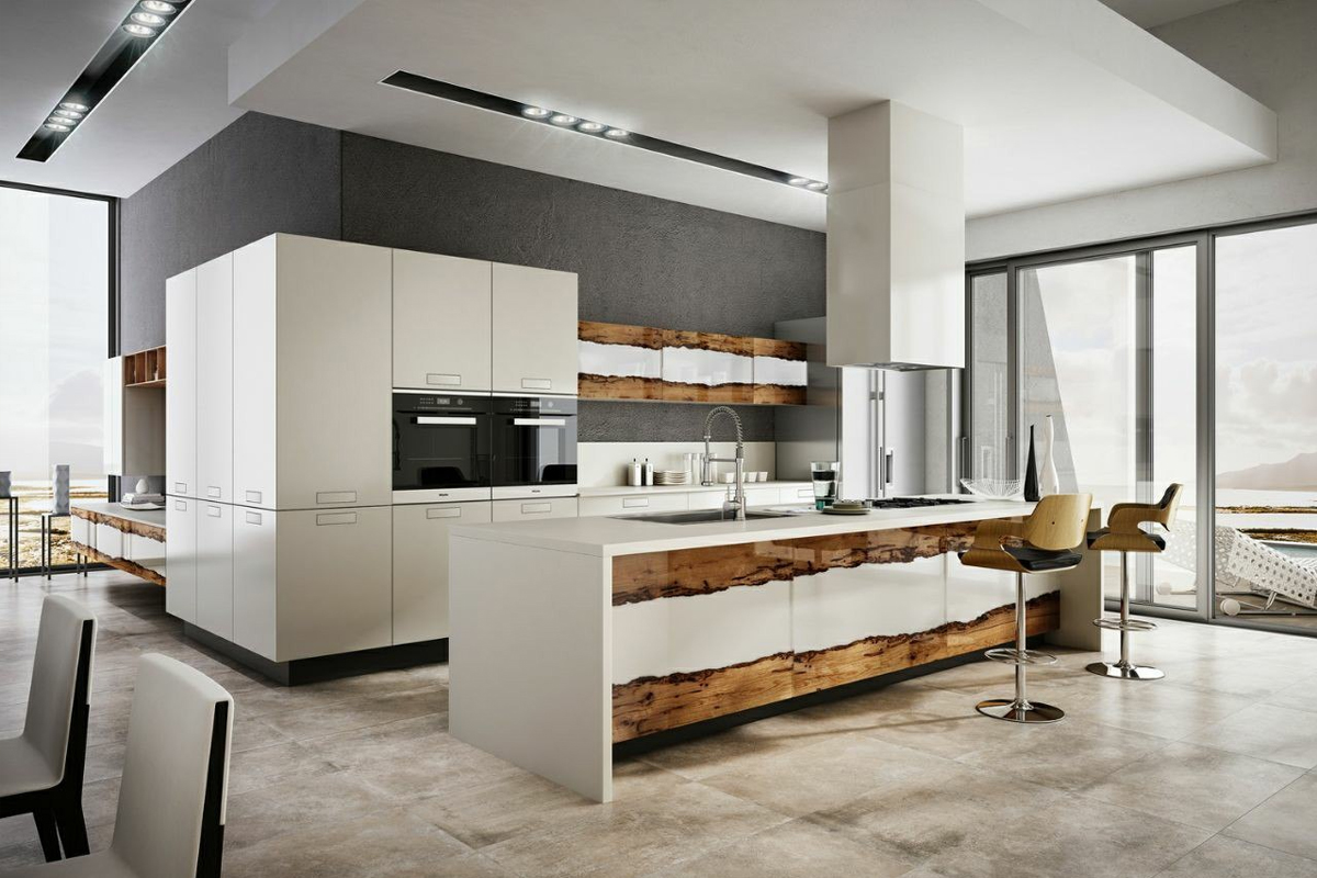 Натуральные материалы и текстуры — тренд на экологичность проявляется в использовании шпона ценных пород дерева, каменных столешниц, фасадов с текстурой натуральных материалов.