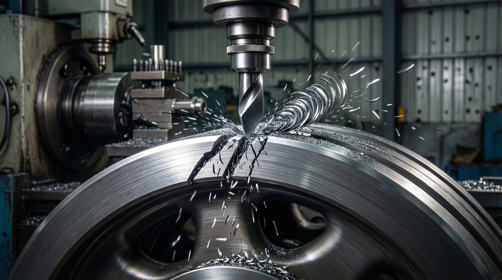 Глубина односторонней проточки достигает 15 мм, что достаточно для восстановления колеса после образования плоских участков (ползунов) или выработки профиля. Скорость подачи регулируется в диапазоне от 0,05 до 0,35 мм/об в зависимости от твердости материала колеса и требуемого качества поверхности. Шероховатость после обработки не превышает Ra 3,2 мкм, что соответствует требованиям для колес подвижного состава, эксплуатируемого на скоростных участках.