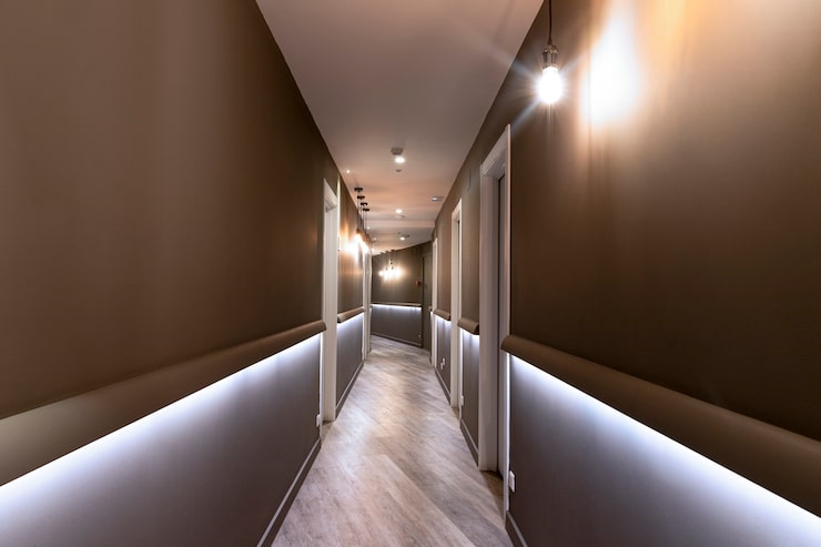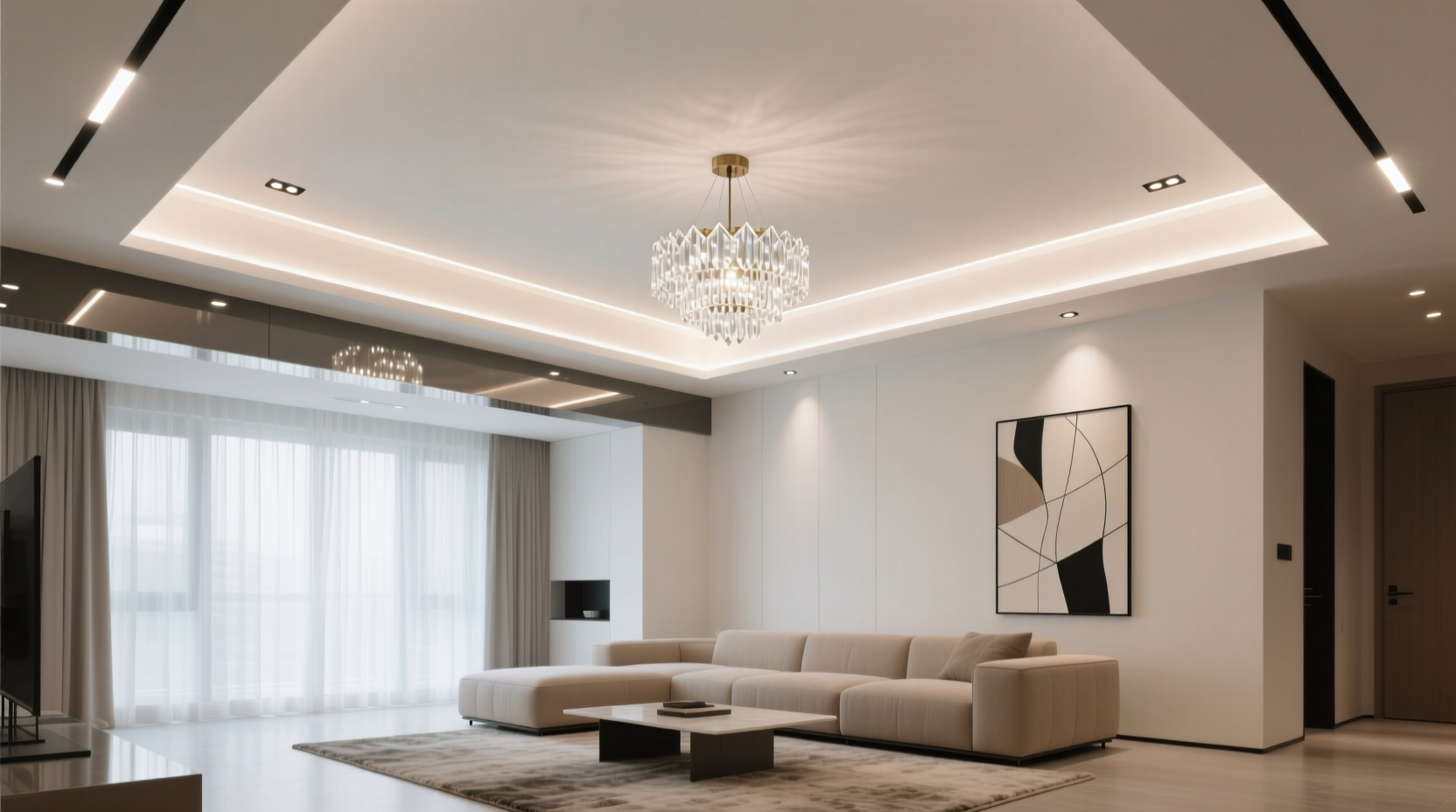 Для встраиваемых светильников нужно предусмотреть вентиляционные зазоры, чтобы избежать перегрева и деформации материала. Скрытая подсветка по периметру помещения или в многоуровневых конструкциях создает мягкое рассеянное освещение, идеальное для создания комфортной атмосферы в вечернее время. Важно использовать качественные трансформаторы и драйверы для LED-систем, а также предусмотреть удобное управление освещением через выключатели или смарт-системы.
