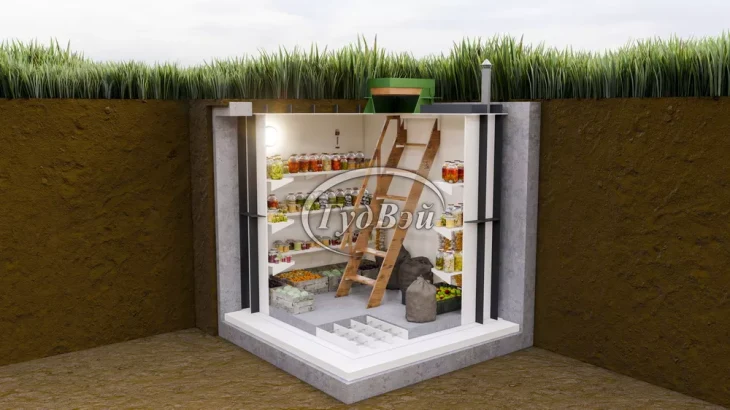 Стандартная комплектация включает вентиляционную систему, полки для хранения, герметичный люк и лестницу. Некоторые модели дополнительно оснащаются освещением, термометрами и гигрометрами для контроля микроклимата.