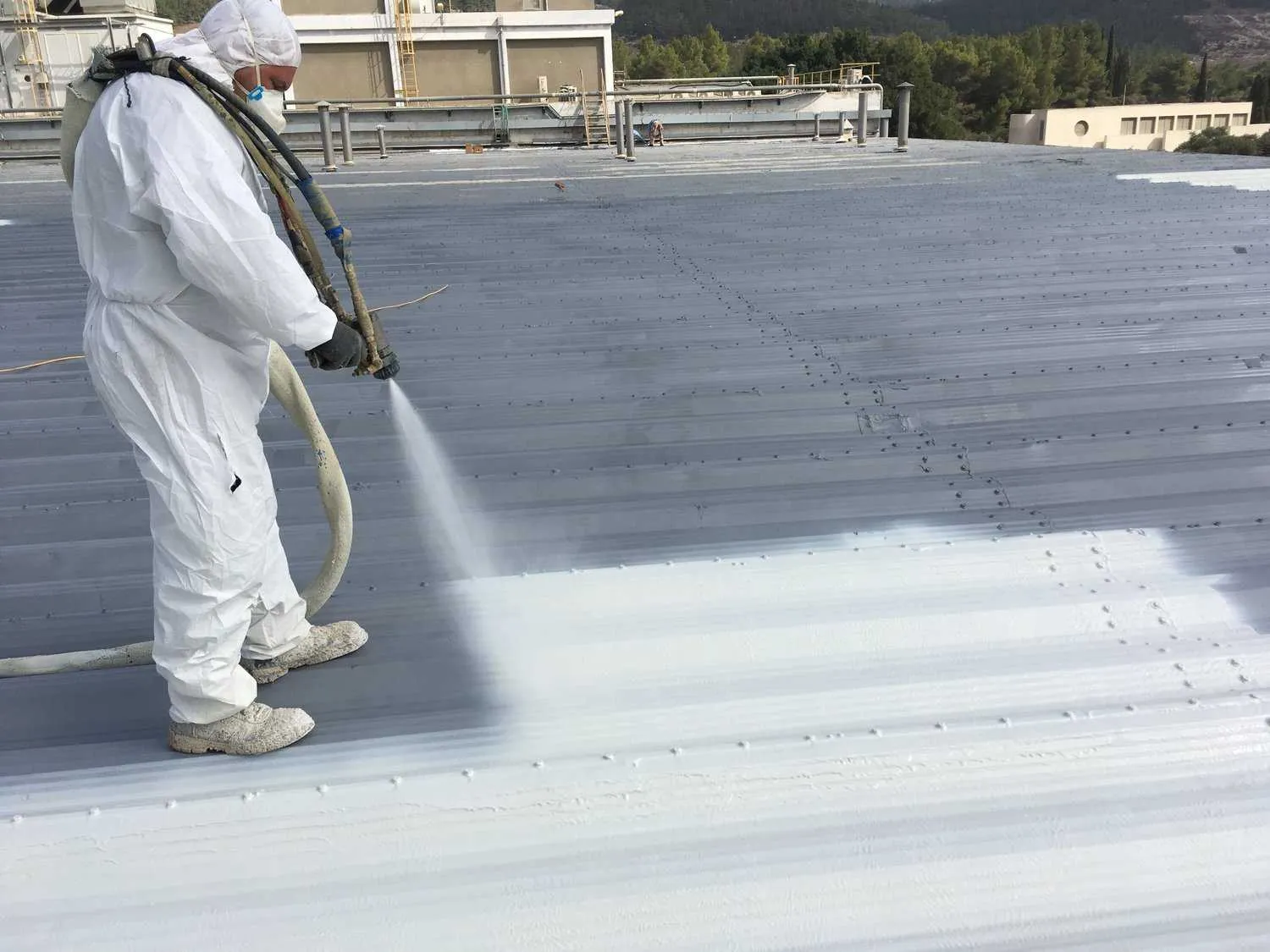 В кровельных работах полимочевина используется для создания долговечных покрытий на плоских и сложных по геометрии крышах. Материал может наноситься непосредственно на существующие кровельные покрытия, что упрощает ремонт и реконструкцию. Паропроницаемость покрытия позволяет избежать накопления влаги в нижележащих слоях.