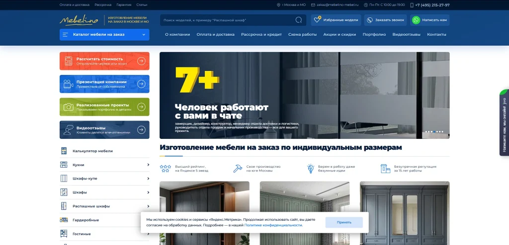 Mebelino известна отличным сервисом и вниманием к деталям. Замер помещения и разработка дизайн-проекта выполняются бесплатно и оперативно, причём заказчик может внести правки на всех этапах работы. Доставка по Москве осуществляется точно в оговорённые сроки, сборка производится аккуратно с уборкой после монтажа. Цены при этом остаются конкурентными, поскольку фабрика работает без посредников и оптимизирует затраты.