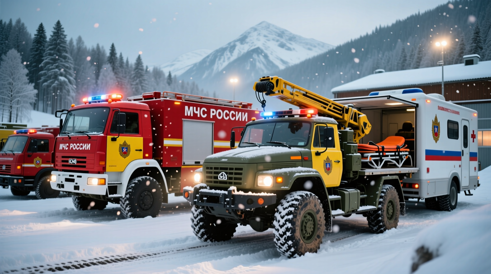 - Чрезвычайные службы — пожарные машины, спасательные автомобили, мобильные пункты управления.