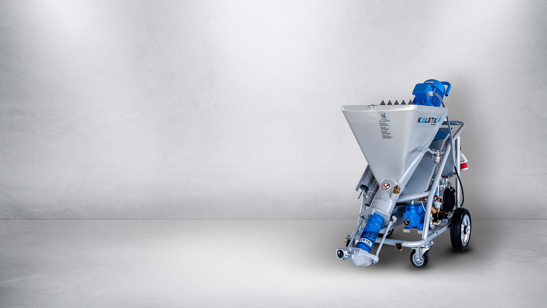 Флагман — Kaleta 6 — наиболее производительная и выносливая модель, рассчитанная на интенсивную эксплуатацию на больших площадках и при фасадных работах. Система подачи материала разработана таким образом, чтобы сократить расход смеси и повысить точность нанесения.