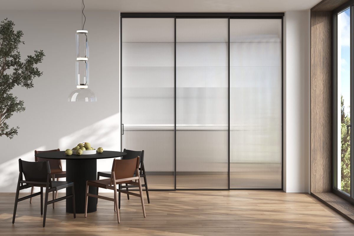 Позволяют оперативно изменять конфигурацию помещений. Раздвижные механизмы бывают подвесными (с верхним рельсом) и рельсовыми (с направляющей в полу). Особенно востребованы в трансформируемых пространствах конференц-залов.