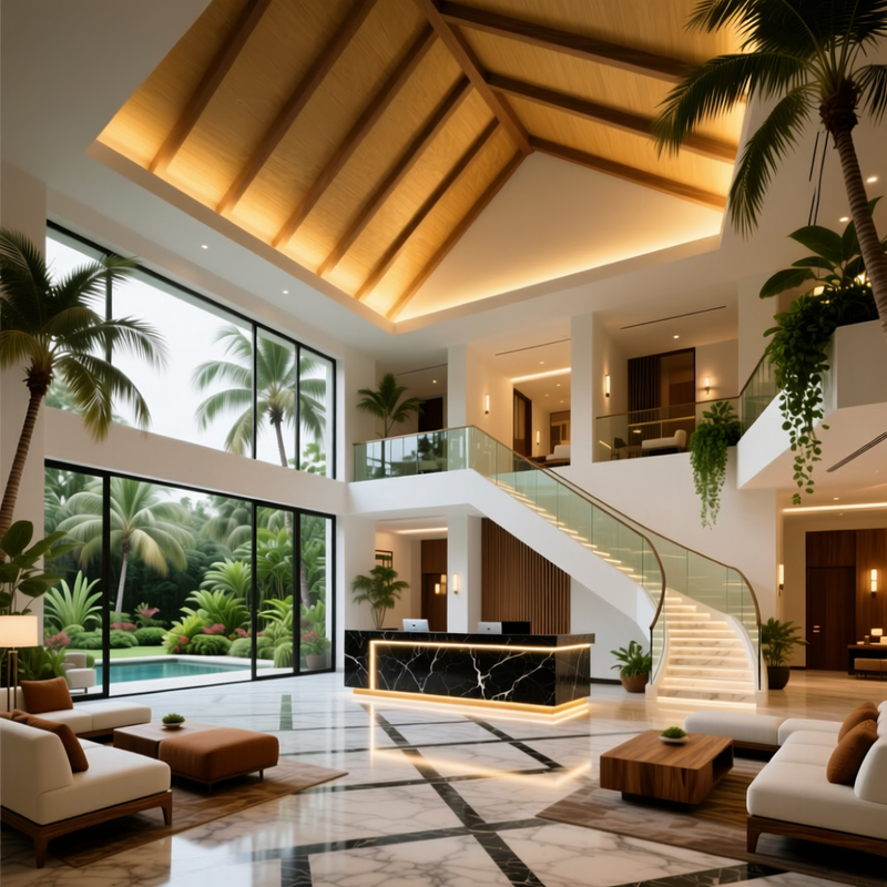 Стиль и эстетика: Стройматериалы должны гармонировать с общим дизайном отеля.