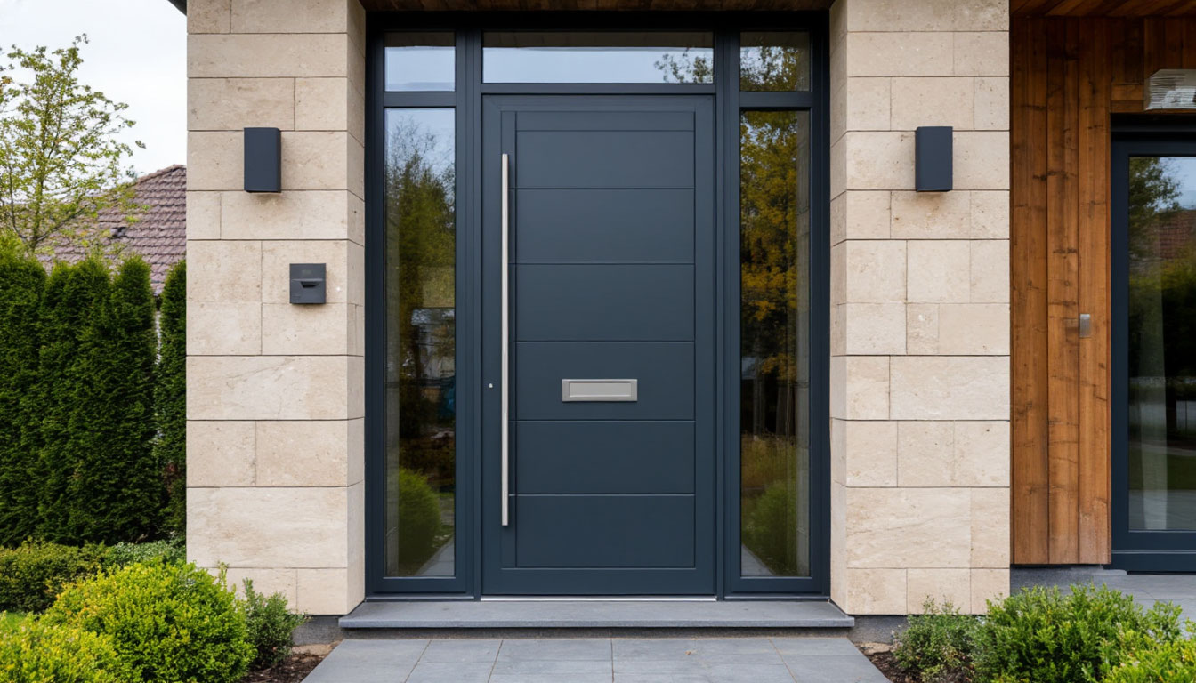 Для загородных домов оптимальным решением становятся конструкции с терморазрывом. Они исключают промерзание и образование наледи на внутренней поверхности, сохраняя тепло внутри помещения. Внешняя отделка должна быть устойчива к атмосферным воздействиям — порошковое напыление, молотковая эмаль или специальные панели с защитным покрытием.