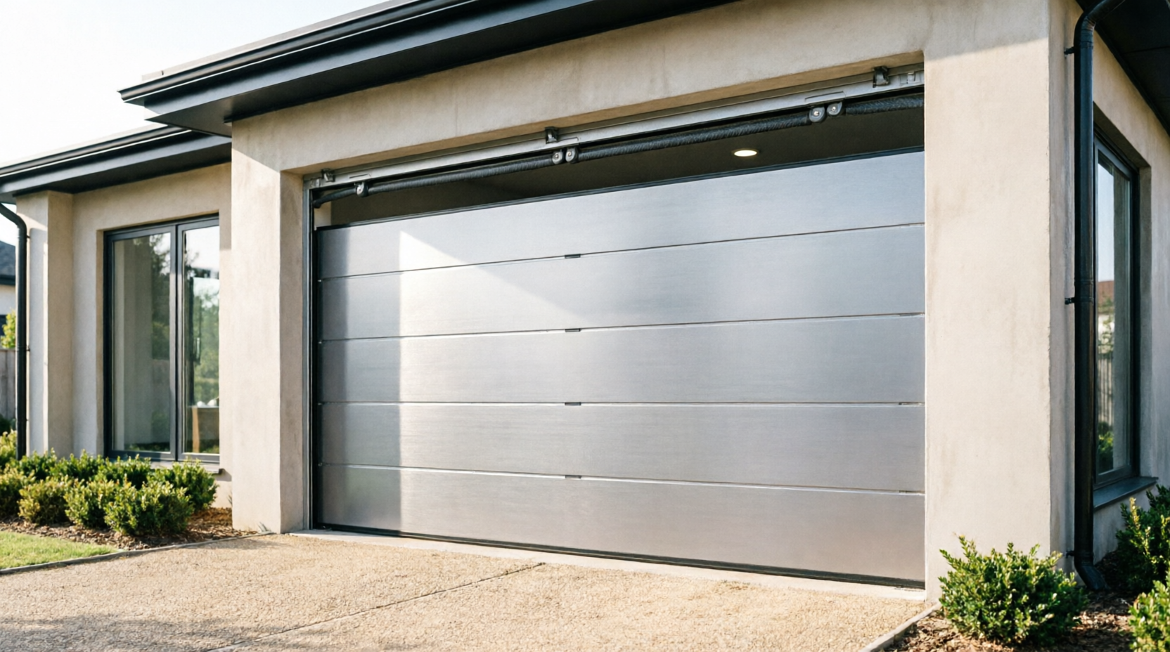 Секционные ворота часто оказываются наиболее универсальным решением. Они компактны, хорошо удерживают тепло и легко автоматизируются. Поэтому их чаще всего устанавливают в современных частных домах.
