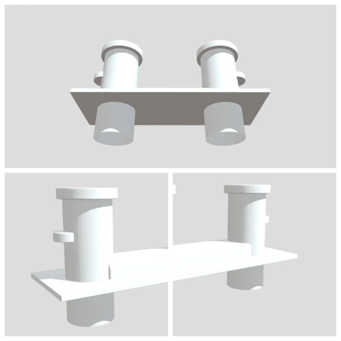 Кнехт – является частью швартовного и буксирного устройств и служит для крепления швартовых или буксирных тросов, накладываемых на общем фундаменте и снабженных в верхней части шляпками или приливами, препятствующими соскальзыванию тросов. Двухтумбовые кнехты предназначены для швартовки судна у причального фронта, пристани или в доке.