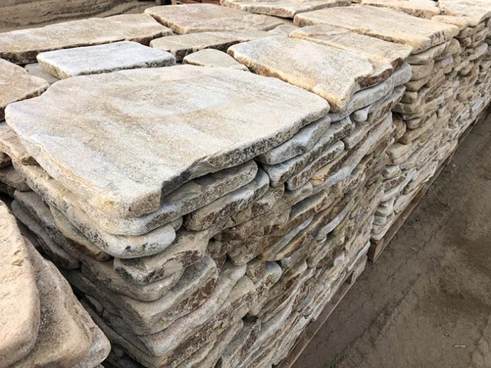 ИП Сидорова Е.В. продает бело-желтый галтованный песчаник, добываемый в Ростовской области. Толщина этого природного камня варьируется от 2 до 5 сантиметров.