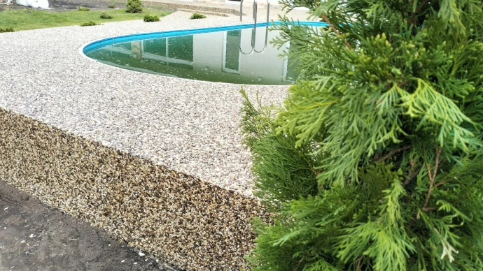 Если перед Вами стоит задача благоустройства вашего участка, то мы умеем решить эту задачу с максимальным комфортом для вас и при этом неповторимость и индивидуальность. Каменный ковёр применяется в основном на горизонтальных и вертикальных поверхностях таких как тротуар, бортики бассейнов, цоколь, парковка, придомовая территория, балконы, террасы, полы в помещении, которое подразумевает эстетическое покрытие, очень хорошо сочетается с тротуарной плиткой. Цена под ключ.