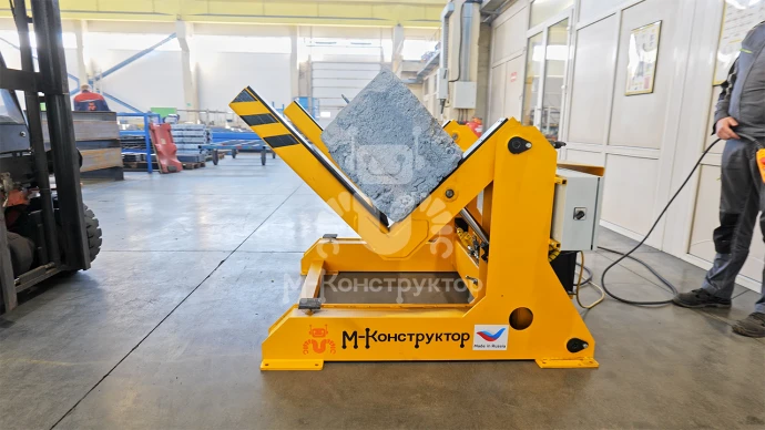 Изменение положения груза в пространстве происходит благодаря поворотному механизму и гидравлическому приводу кантователя, что позволяет удобно и безопасно производить выемку железобетонных изделий из формы.