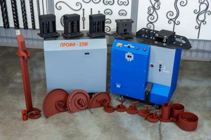 Станок «ПРОФИ-2ЭМ» с большим набором операций художественной ковки предназначен для изготовления широкого разнообразия декоративных элементов из пустотелого и полнотелого металлопроката методом «холодной ковки», которые собираются в конечное изделие при помощи сварки в ажурные металлические ограды или в украшенные витым узором лестницы, придавая помещению или придомовой территории неповторимость и шарм.