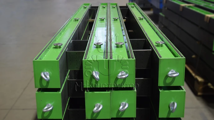 Магнитные борта «М-Конструктор» изготавливаются с помощью роботизированной техники для резки и сварки металлов, поэтому изделия идеально плоские и прямолинейные. Для изготовления оборудования для магнитной опалубки применяется качественная листовая сталь. Толщина листа может составлять от 4 до 10 мм в зависимости от потребностей заказчика. Рабочая поверхность борта может быть разной конфигурации в зависимости от того, каким требуется выполнить торец железобетонного изделия (гребень, паз, фаска). Форма магнитных бортов определяется потребностями каждого заказчика.