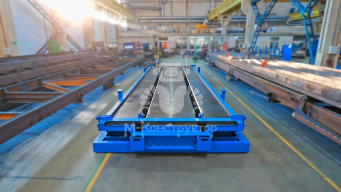 В металлоформах, изготовленных заводом «М-Конструктор», предусмотрен выпуск плит ТТ с возможностью переналадки по длине. Форма одноместная, оснащена силовой рамой для работы с преднапряжённой арматурой, силовыми упорами и защитными кожухами на торцах.