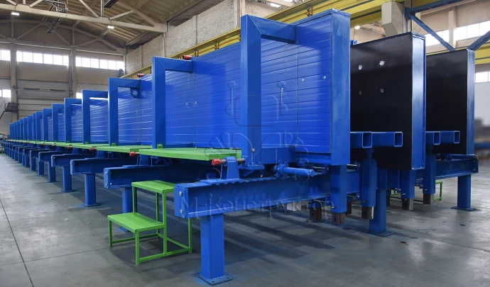 Формы могут оснащаться системой теплового подогрева для ускорения набора бетонным изделием распалубочной прочности. Откатные борта делают процесс распалубки лёгким и технологичным.