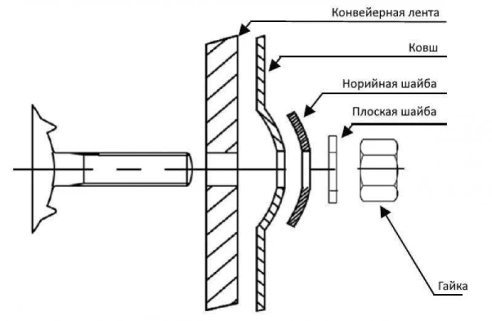 — Надежность и долговечность. Наши болты разработаны для работы в сложных условиях и выдерживают интенсивную эксплуатацию, обеспечивая надежную фиксацию ковшей на конвейерных лентах.