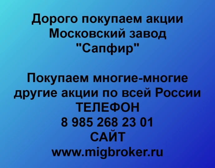 Если Вы решили продать акций «Московский завод Сапфир» можно обратиться в компанию «МигБрокер», скупающему акции в любом городе России.