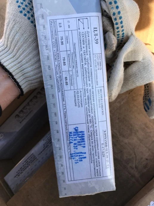 Электроды ЦЛ-39 Для сварки элементов поверхностей нагрева котлоагрегатов, а также корневых слоев швов стыков толстостенных трубопроводов из теплоустойчивых хромомолибденовых сталей марок 12Х1МФ и 15Х1М1Ф, работающих при температуре до 585°С. Сварка во всех пространственных положениях, кроме вертикального сверху вниз, постоянным током обратной полярности.