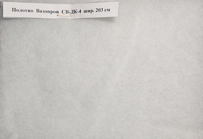 Полотно клееное объемное нетканое технического назначения Вазопрон СВ-ДК-4 изготавливается по ТУ 17 РСФСР 19-76-92-90. Вазопрон предназначен для очистки воздуха, подаваемого в покрасочные камеры (фильтры для покрасочных камер), фильтрации воздуха и воды, а также в фильтрах воздушных систем кондиционирования воздуха и приточной вентиляции. Полотно долговечно, устойчиво к агрессивным воздействиям окружающей среды.