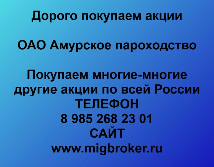 Для продажи акций можно обратиться в компанию «МигБрокер», скупающему акции «Амурское пароходство» в любом городе России