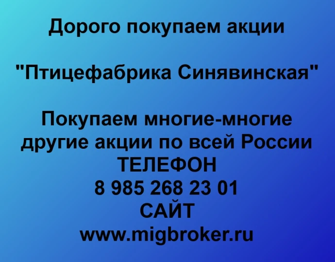 Для продажи акций можно обратиться в компанию «МигБрокер», скупающему акции «Птицефабрика Синявинская» в любом городе России