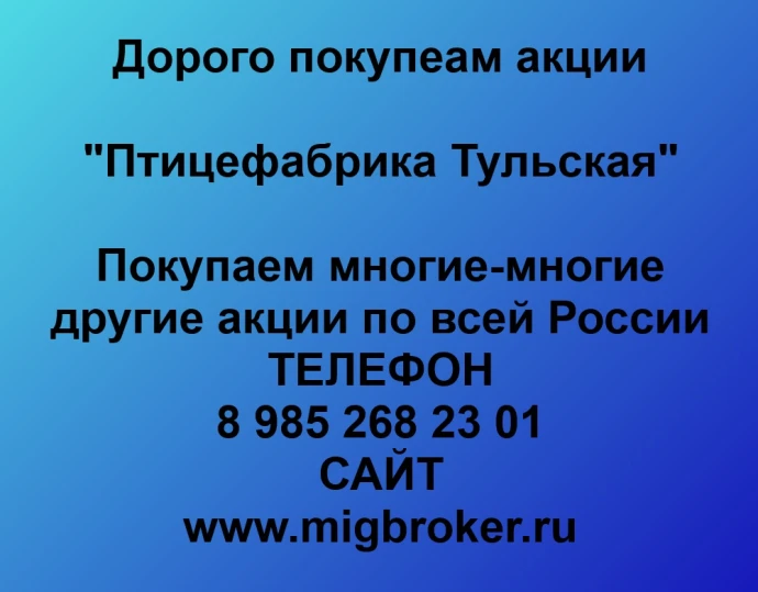 Для продажи акций можно обратиться в компанию «МигБрокер», скупающему акции «Птицефабрика Тульская» в любом городе России