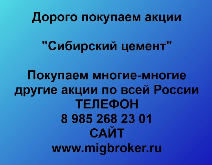 Для продажи акций можно обратиться в компанию «МигБрокер», скупающему акции «Сибирский цемент» в любом городе России