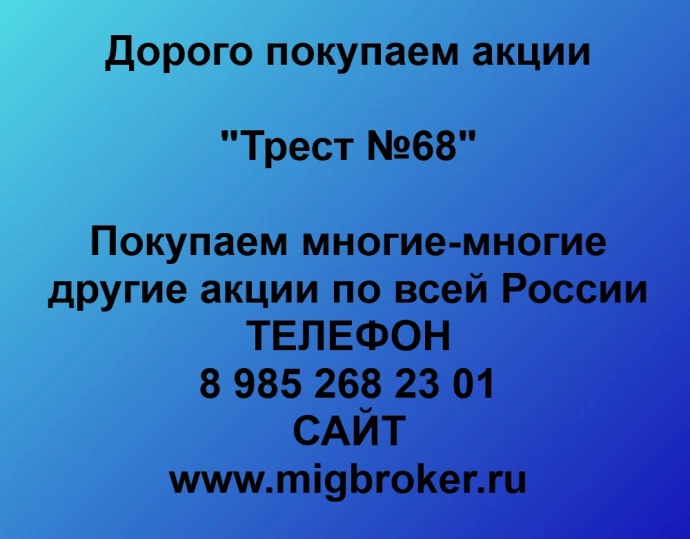 Для продажи акций можно обратиться в компанию «МигБрокер», скупающему акции «Трест № 68» в любом городе России