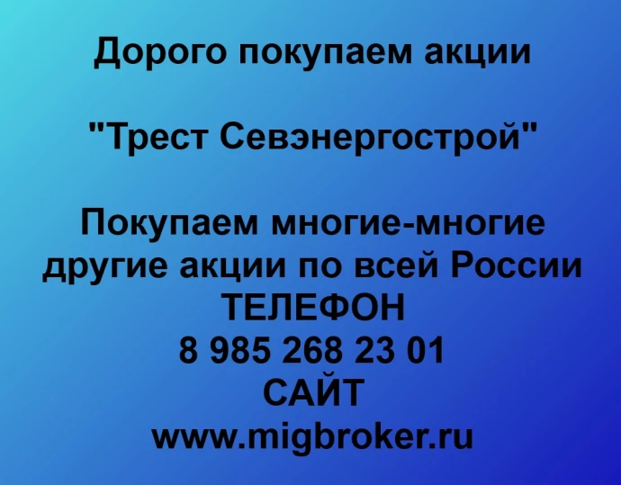 Для продажи акций можно обратиться в компанию «МигБрокер», скупающему акции «Трест Севэнергострой» в любом городе России