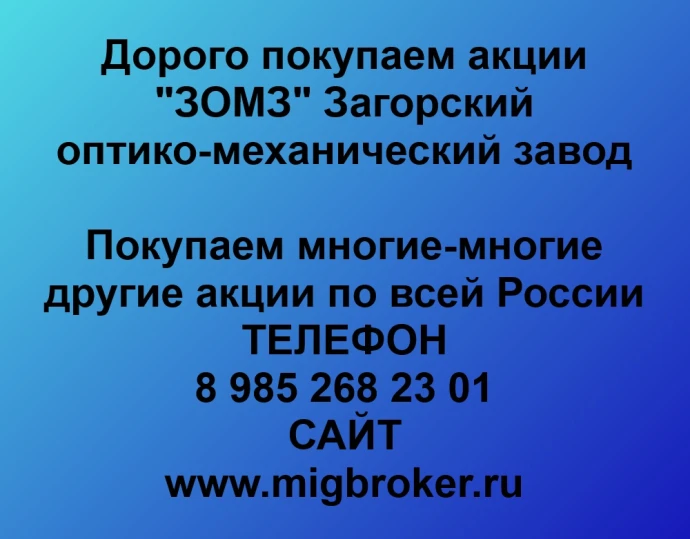 Для продажи акций можно обратиться в компанию «МигБрокер», скупающему акции «ЗОМЗ» в любом городе России