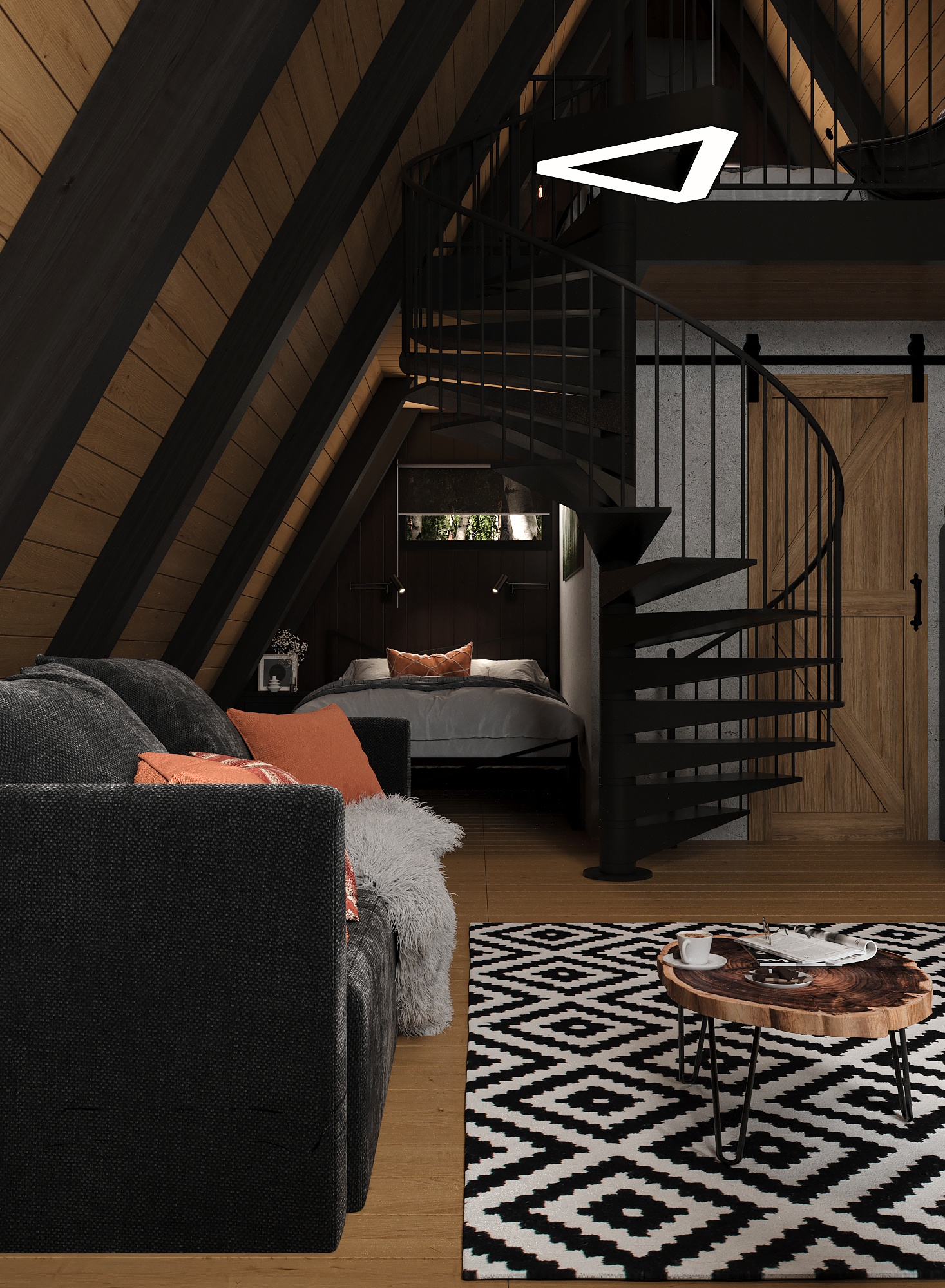 В эстетике меблировки и отделки доминирует экоминимализм с плавными формами. Лаконичные силуэты мебели с закругленными углами, приглушенная природная палитра и сочетание контрастных фактур, например, вельвет и бетон, металл и дерево, создают ощущение уюта и функциональности без визуальной перегруженности. Такой прием визуально расширяет пространство и способствует релаксации.