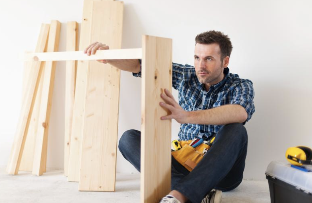 Например, такую систему можно сделать буквально «из ничего»: понадобятся лишь струганные деревянные доски, например, от овощных ящиков, направляющие — небольшие бруски или более длинные доски, и шурупы-саморезы по дереву. На получившуюся «лестницу» можно кнопками закрепить безделушки, записки и прочую мелочь.
