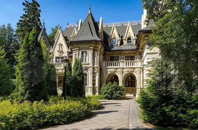Подборку открывает 4-этажный коттедж в Московской области площадью 2 164 кв. метров на участке 58 соток за 2,5 млрд рублей. Согласно описанию, здание выполнено в нормандском стиле с элементами французской дворцовой архитектуры — проект создан на основе исторических эскизов. В доме — кухня, большая и малая столовые, несколько гостиных, каминный зал, зимний сад, бильярдная, чайная зона, СПА-комплекс, домашний кинотеатр и семь спален с собственными санузлами и гардеробными.