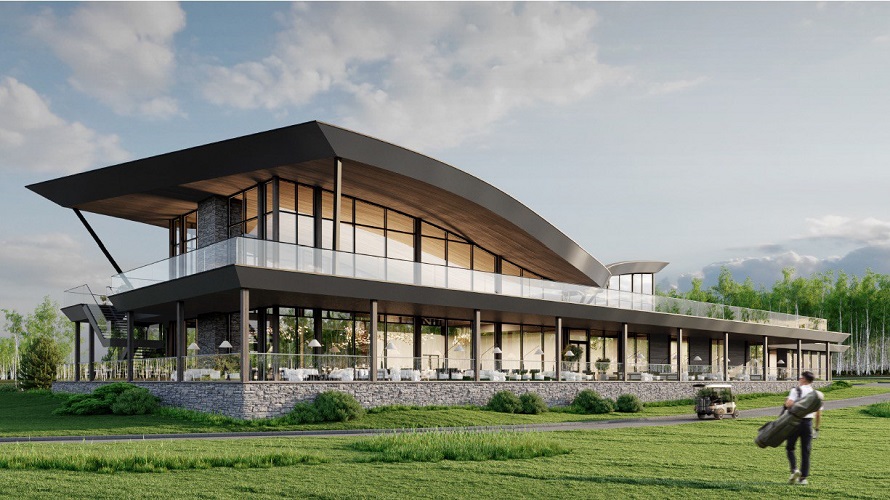 Девелопер деревянного индустриального домостроения BN Group представил концепцию здания современного гольф-клуба. Проект предусматривает создание многофункционального пространства из CLT-панелей. В будущем на территории гольф-клуба также появится небольшой отель.